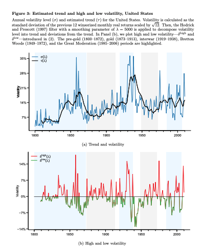 Given the long history studied and the long lag periods, it is hard to use low volatility as a trading signal for short-term shocks, but this volatility relationship is important when thinking about long-term crisis risks. Low volatility will cause investors to take bigger risks. The costs of these risks will have to be borne by someone.